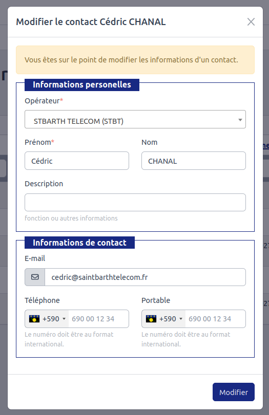 - Consultation, modification, suppression ou ajout d’opérateurs.