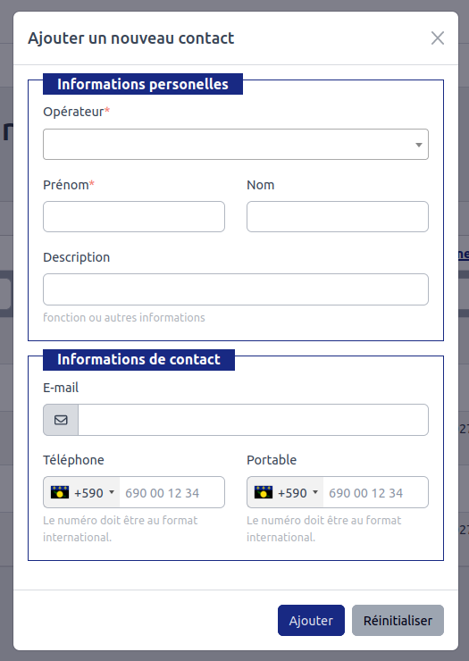 Contacts des opérateurs