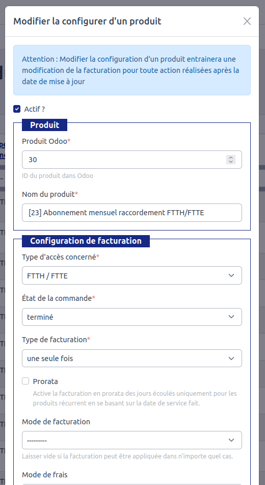 facturation Mode de fraisProrataActif ?Mismise àjour le ...jour.